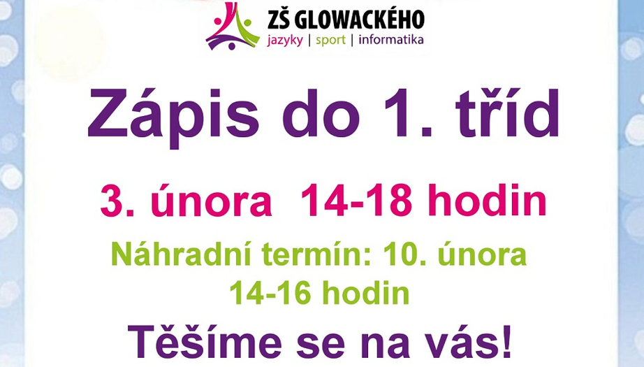 Vážení rodiče, milí předškoláčci, srdečně Vás zveme k zápisu do 1. tříd pro školní rok 2026/2027 . Zápis pro školní rok 2026/2027 bude probíhat dne 3. 2. 2026 od 14:00 do 18:00 hod. Náhradní termín...