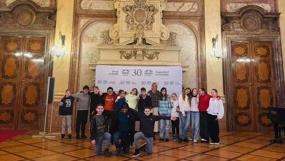 V pátek 9. ledna se třída 6.D vydala na návštěvu Senátu Parlamentu České republiky. Už samotná cesta probíhala v pravé zimní atmosféře – za sněžení, které výletu dodalo téměř pohádkový nádech.