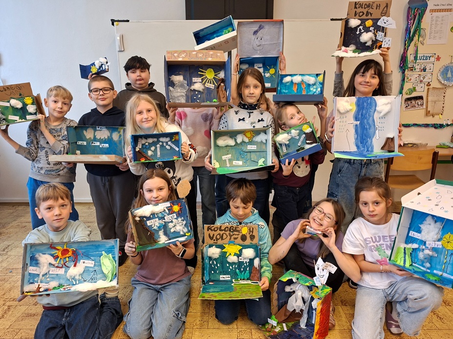 A tak kapka vody úspěšně doputovala zpět do oceánu a s ní i spousta nových znalostí třeťáčků. Krabice od bot se na chvíli staly malými učebnicemi přírody a kdyby voda uměla mluvit, určitě by dětem zatleskala.