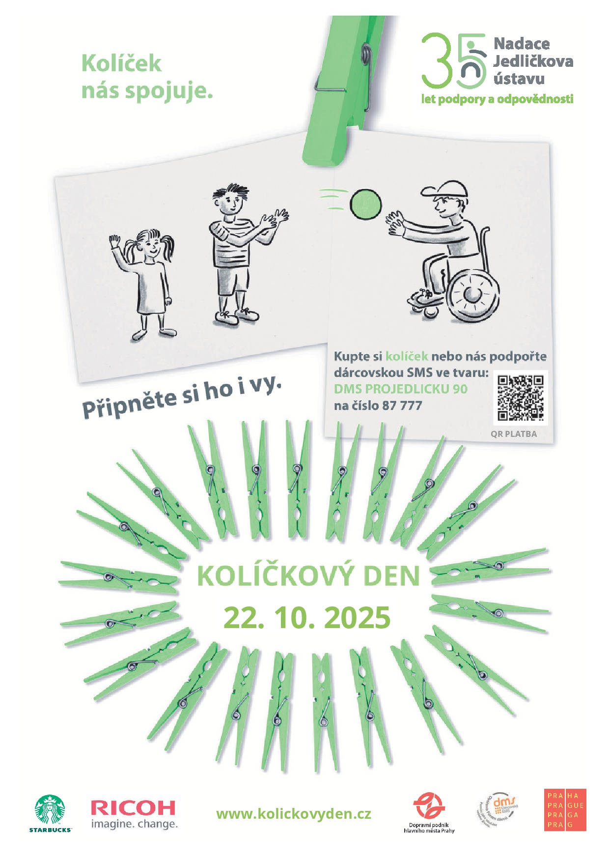 Také letos se naše škola zapojí do celostání charitativní akce Kolíčkový den - kolíček nás spojuje, která proběhne ve středu 22. října 2025.