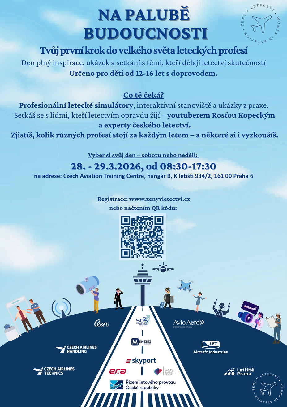 Rádi bychom Vás informovali o vzdělávací akci „NA PALUBĚ BUDOUCNOSTI“, která je určena žákům 2. stupně základních škol, od 12-16 let, s doprovodem. Cílem akce je ukázat dětem různé možnosti profesní dráhy v letectví, od pilotek přes palubní personál až po pozemní profesionály, a podpořit jejich zájem o technické a dopravní obory.