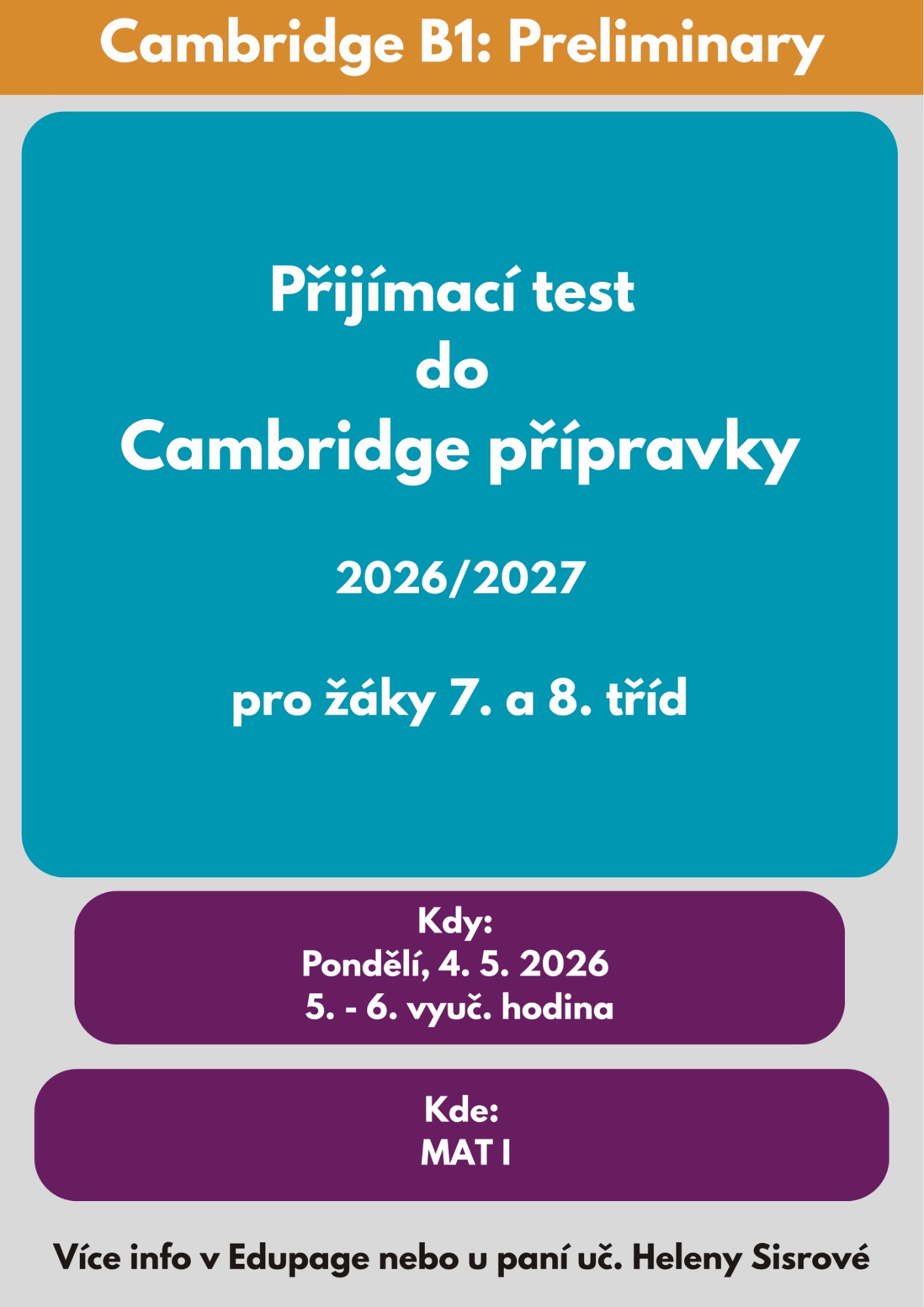 Přijímací test do Cambridge přípravky pro žáky 7. a 8. tříd.