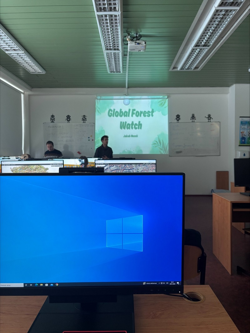 Následovala praktická část, ve které se hlavním nástrojem stal systém Global Forest Watch. Jedná se o interaktivní online platformu organizace World Resources Institute (WRI), která využívá satelitní snímky a data k téměř okamžitému monitorování stavu lesů. Platforma pomáhá sledovat odlesňování, požáry či změny ve využití půdy, zejména v tropických oblastech.