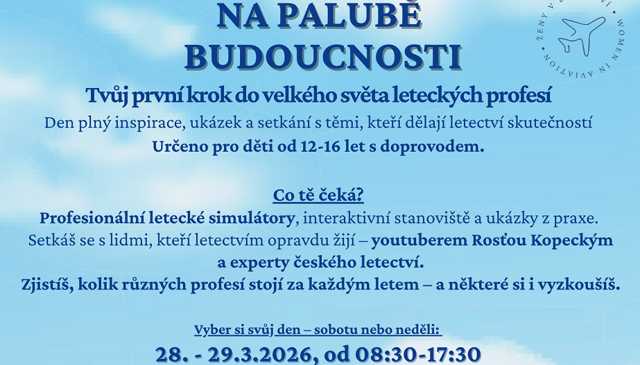 Rádi bychom Vás informovali o vzdělávací akci „NA PALUBĚ BUDOUCNOSTI“, která je určena žákům 2. stupně základních škol, od 12-16 let, s doprovodem. Cílem akce je ukázat dětem různé možnosti profesní...